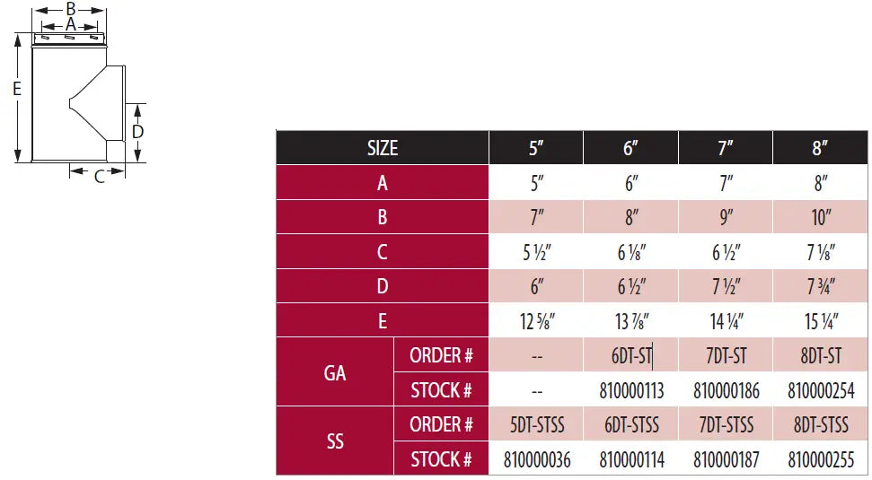 | 6" | 6" | 8" | 6 1/8" | 6 1/2" | 13 7/8" | 6DT-ST / 6DT-STSS | 810000113 / 810000114 |