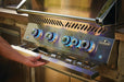 Grill safely and stylishly at night—knobs glow blue when off and turn red while burners are active, enhancing visibility and safety.