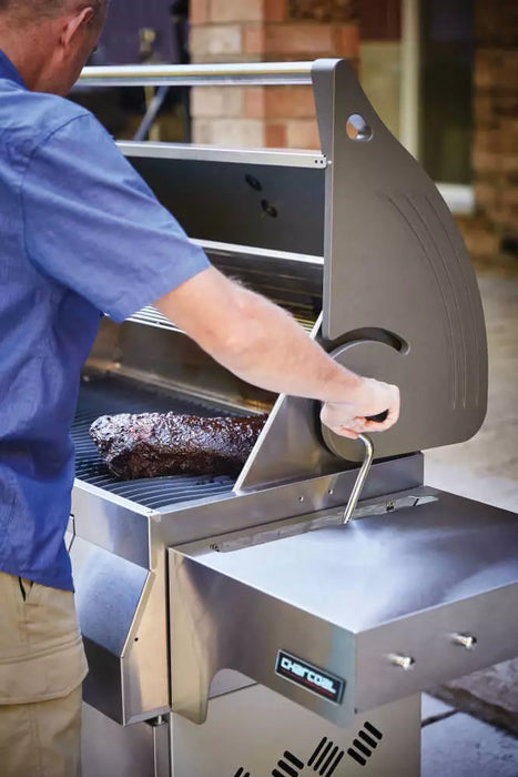Reload charcoal easily through the front-access door, and clean up fast with a slide-out ash and drip tray that catches debris during long cooks.