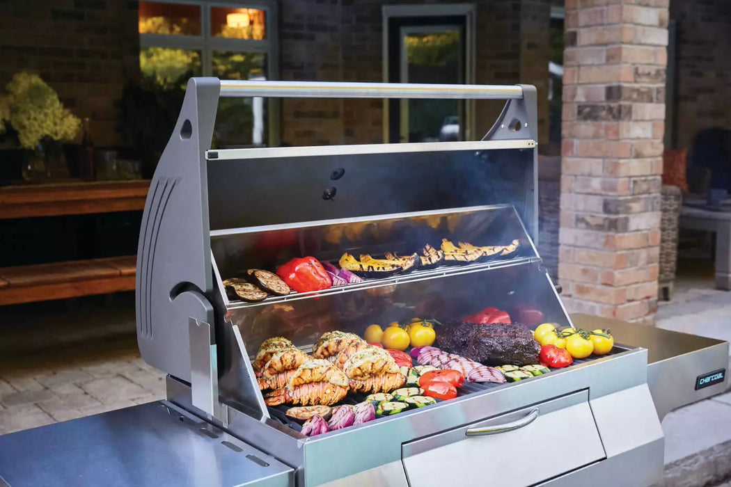 This center-gravity-balanced lid opens smoothly without requiring rear clearance—perfect for tight outdoor kitchens or decks.